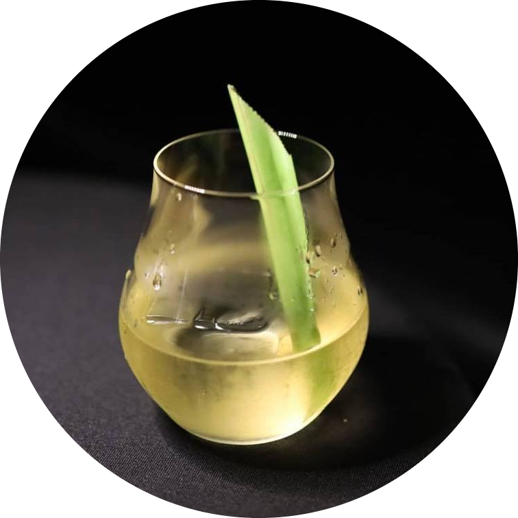 Looking for something simply but really kicking? Here's the answer come and give it a try with this elegant Gin & Tonic for an exotic and floral fragrance.Gin infused Oolong tea , jasmine syrup, coconut water, tonic water, Citric acid, pandan, caramelize sugar- Floral G&T, tea-like -- 350 -